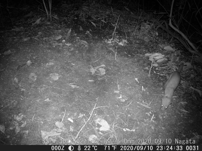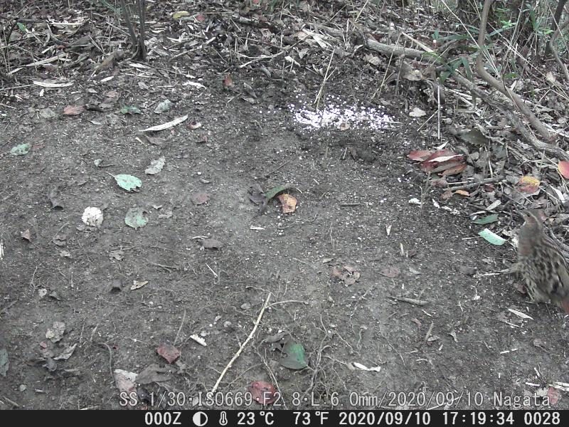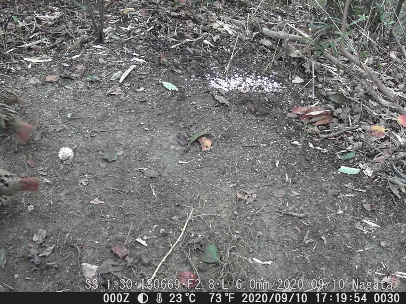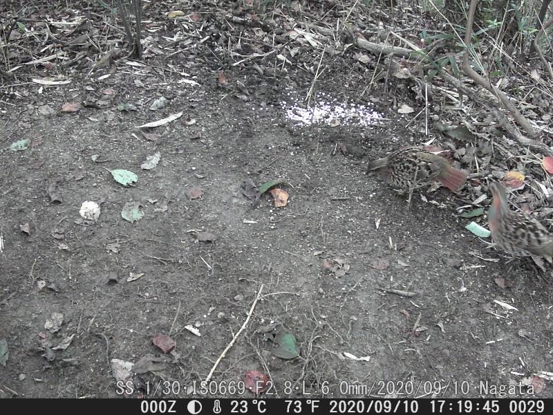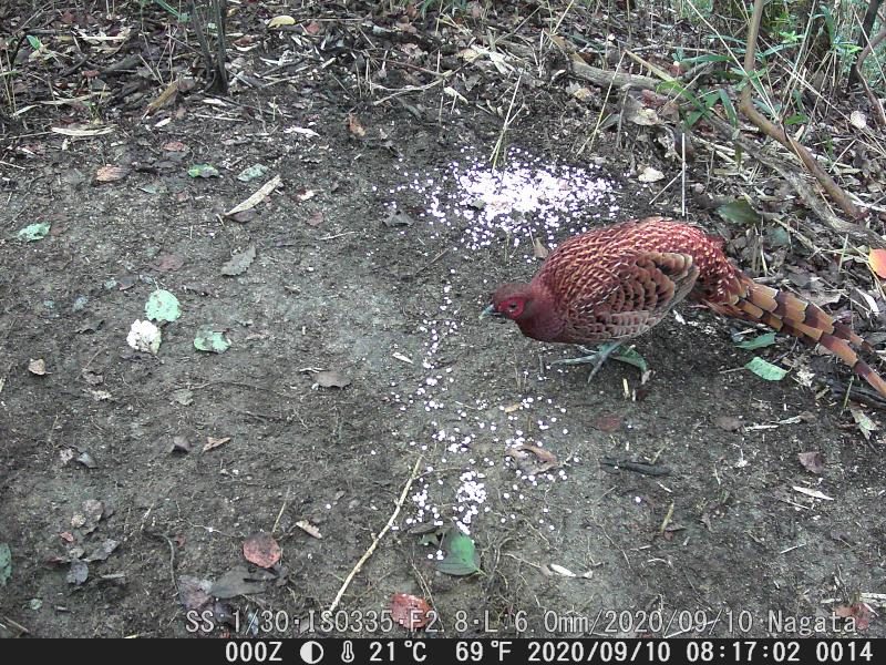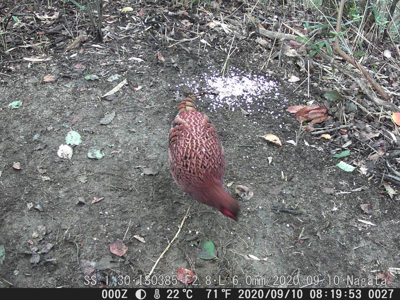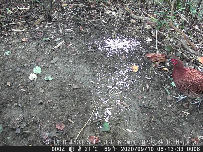 ヤマドリが麦を少し食べるようになった。6分滞在で麦半分食べた。コジュケイは番で20秒で通過。テンも20秒で通過。