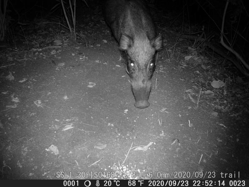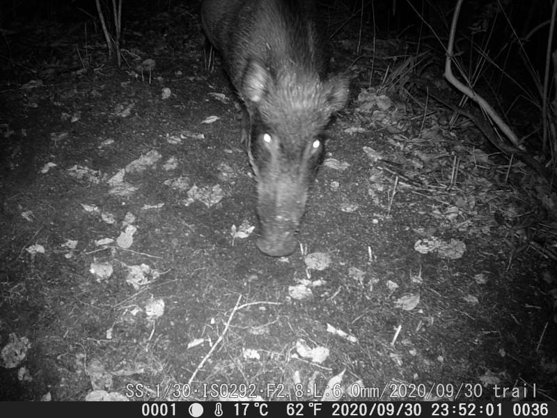 かって、ヤマドリ撮影で山道を不法に拡幅工事をした箇所をイノシシが掘り起こした。通るのも難儀する程だ。その後、地主さんが柵を修理して竹林の中は見えなくした。それにヤマドリを見かける事も無くなった。 柵の中を覗くのは困難だ