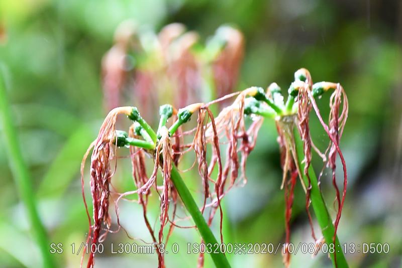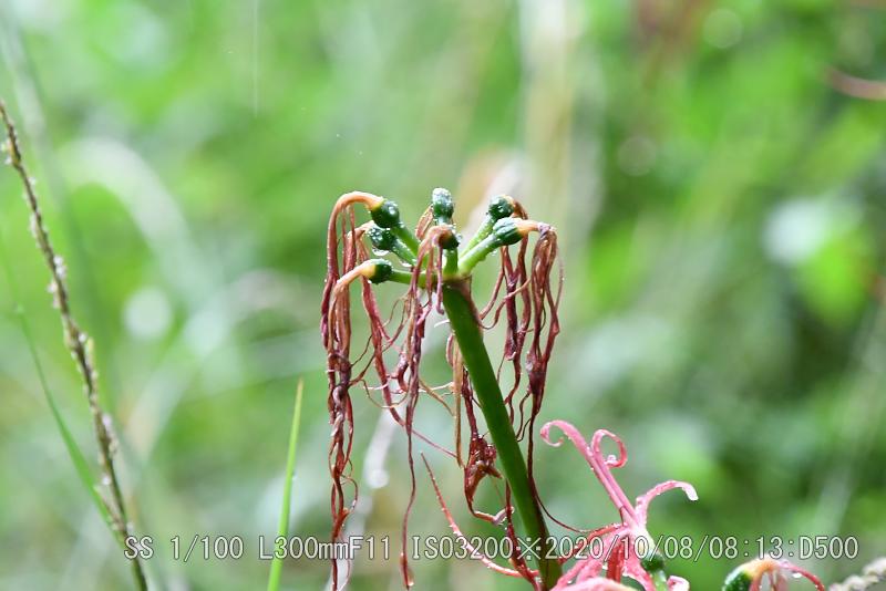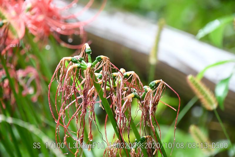 晩夏から初秋にかけて野草に宿る冷たい露のこと]を指すらしい。彼岸花に寒露、みたいだが雨の滴かな。この彼岸花は種が出来そうだ。