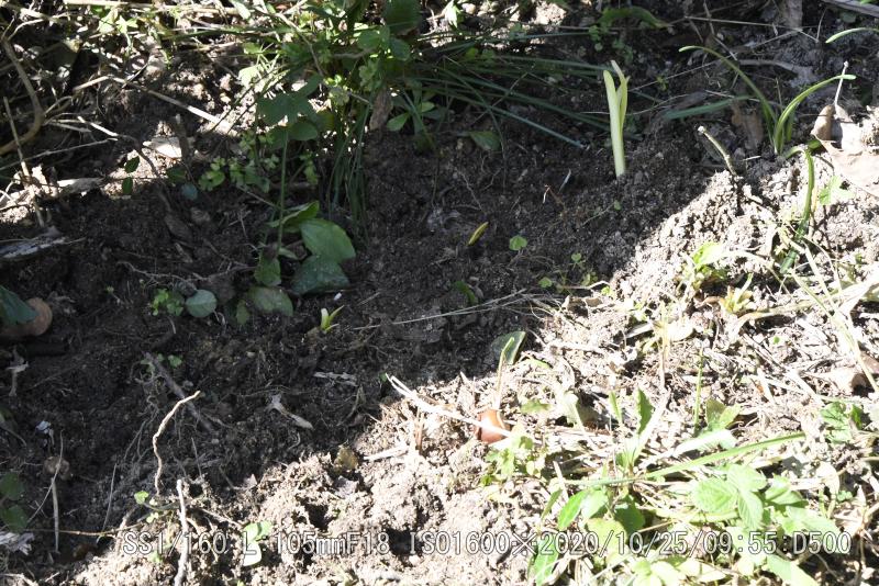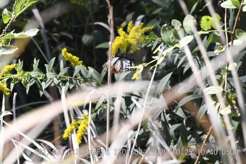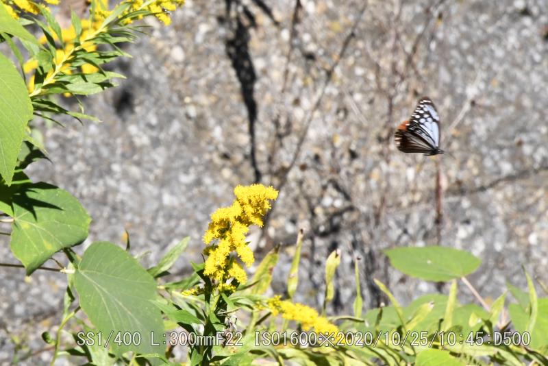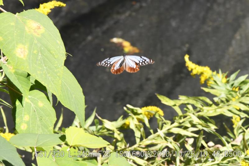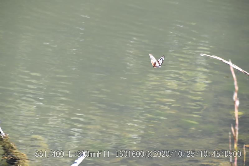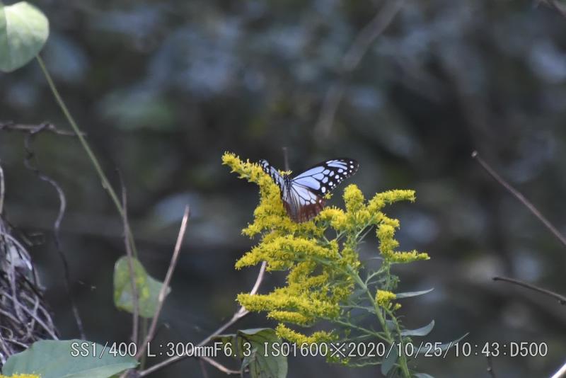 諦めてバッグにカメラを仕舞って、とりあえず堤防の端まで行ったら、池の上を舞っているアサギマダラが居た。♀のようだ。白い花(ヒヨドリバナ、フジバカマ)には近づかない。ゆっくりと落ち着いて蜜も吸わない。それでか、飛んでるシーンを撮る事が増えた。300ミリズームレンズではチョット役不足でもアサギマダラの優雅でゆったりした舞は何とか撮れた。 中国産ヒガンバナ12株を植えた