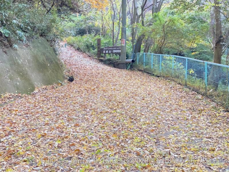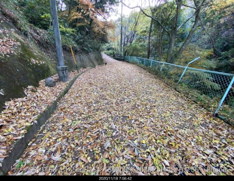 登山道に落ち葉が絨毯を敷いたようになて滑って危険だ。