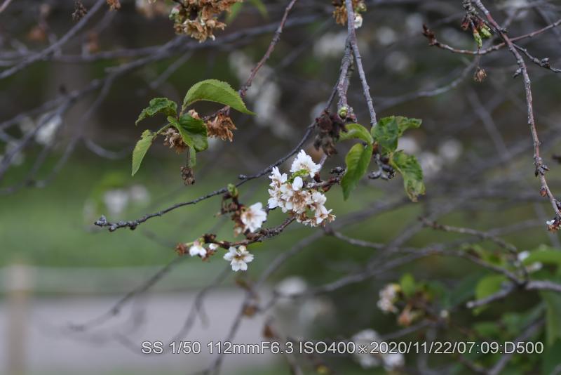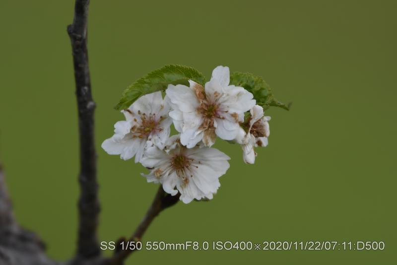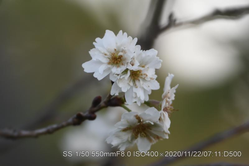 カワセミが定刻に来てた。まだ暗くシャッターが切れない。10分ほど自転車で公園を一回りした。何とかピントが合った。頭をを傾げながら飛び込み姿勢をするが、飛び込むことはなかった。※スマホで散歩中に気軽に撮れるのも公園の良いとこだ。 ジュウガツサクラ。新規の開花は無かった。