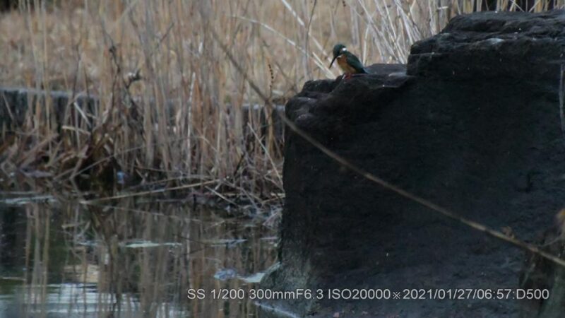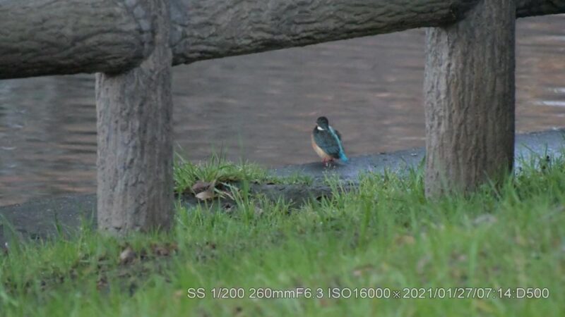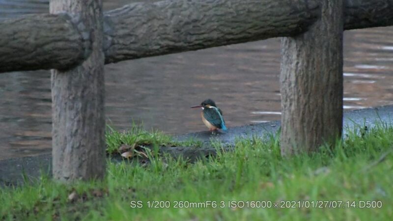 池の距離が離れているので違う個体だ。♀ぽい。嘴が短い。赤い。