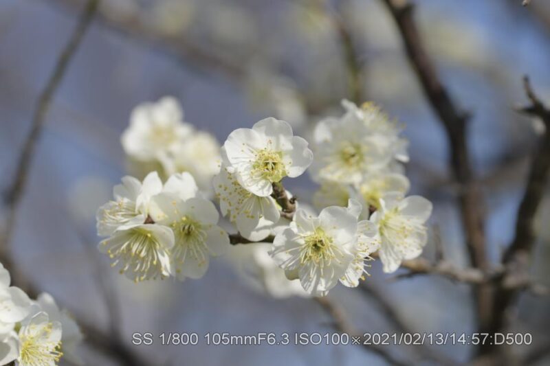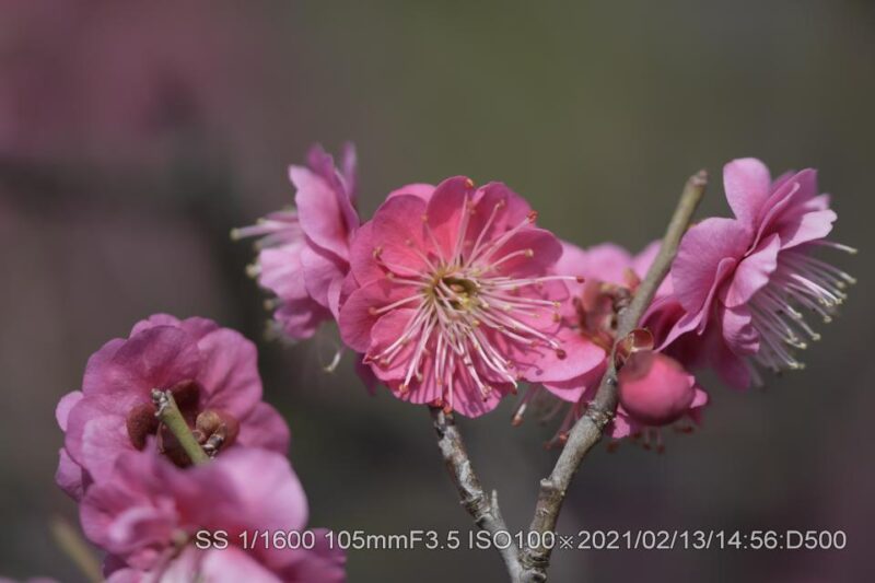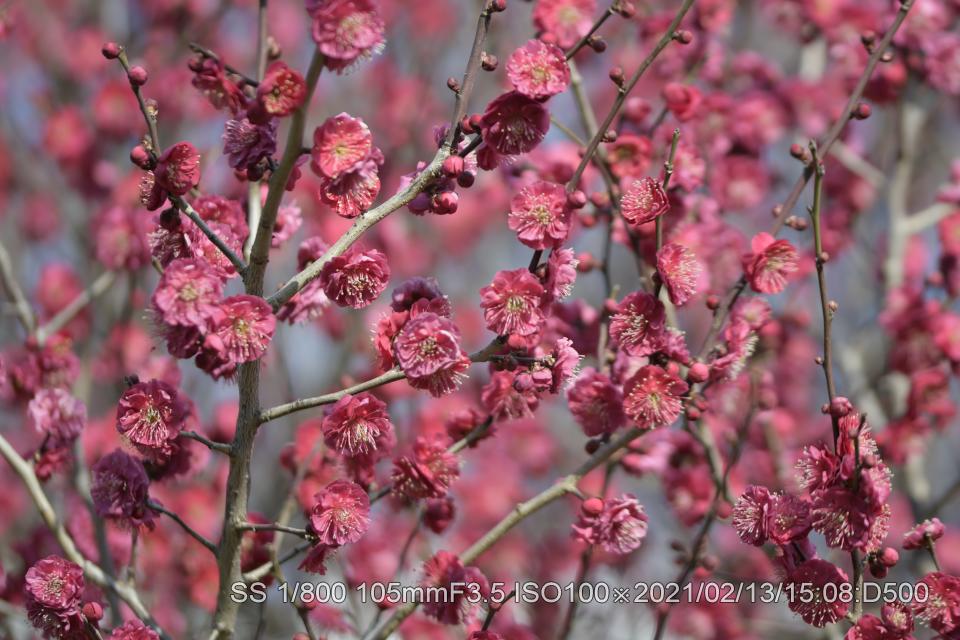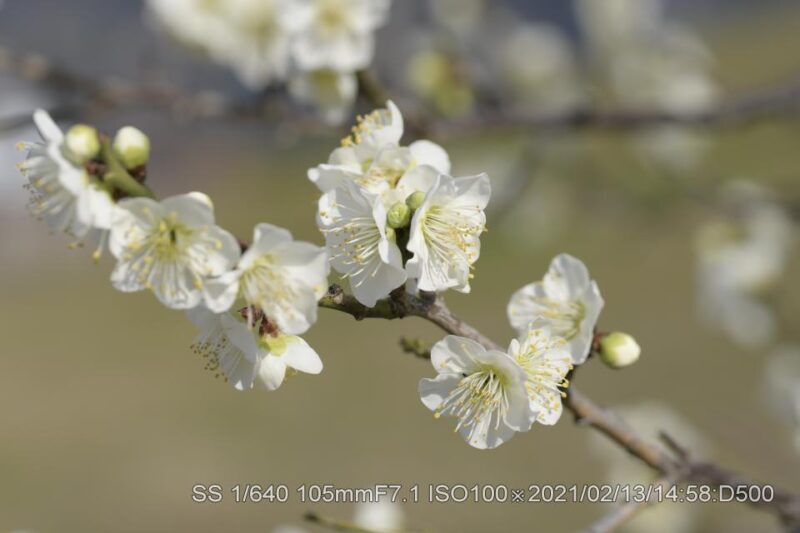 昼からも深北緑地へ散歩した。家族連れで大賑わいだ。たまには不慣れなマクロレンズを持ち出した。梅が満開。オトメツバキが蕾が幾分膨らんだ。
