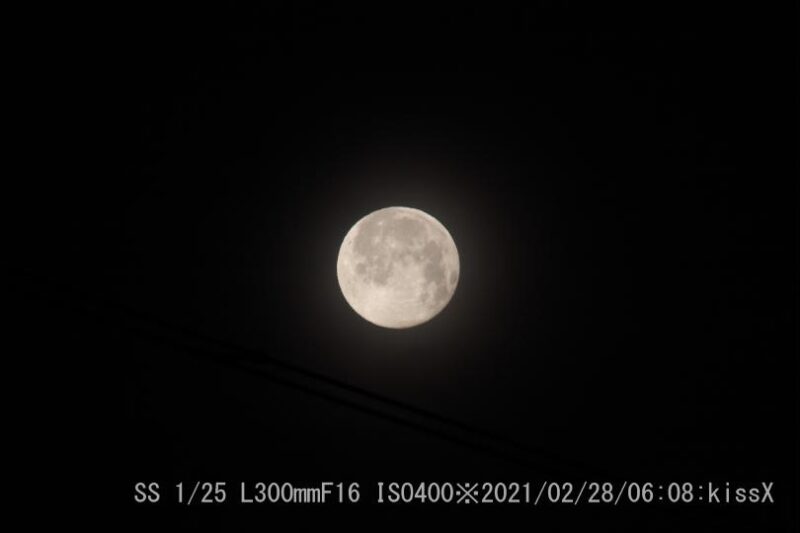 旧暦1月17日・月齢16.3 昨日が満月の月が西の空に輝いていた。池の水鳥の確認は暗くて出来なかった。ただ、キンクロ、アカハシハジロともに居なかった。徒歩(7.3Km)で池まで行った。カメラは軽いCanonKiss 10年前のを持って行った。画像も、そう悪く無い。軽さ優先だ。 門真市・寝屋川