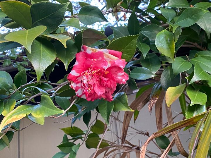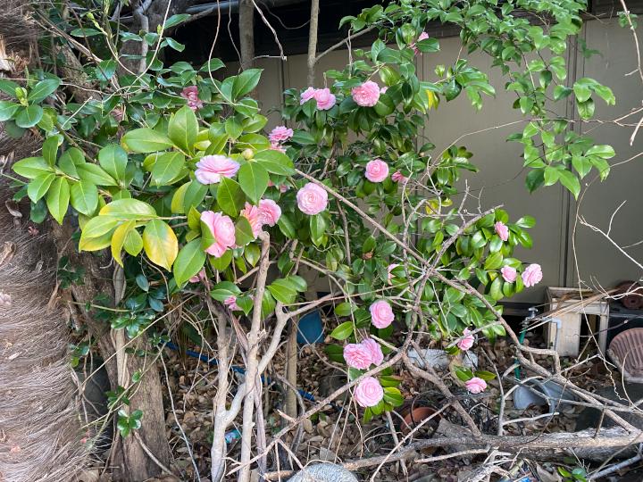 随分と長い間、震災の年には空き家だったと思う。裏側にオトメツバキ、五色椿が咲いていた。