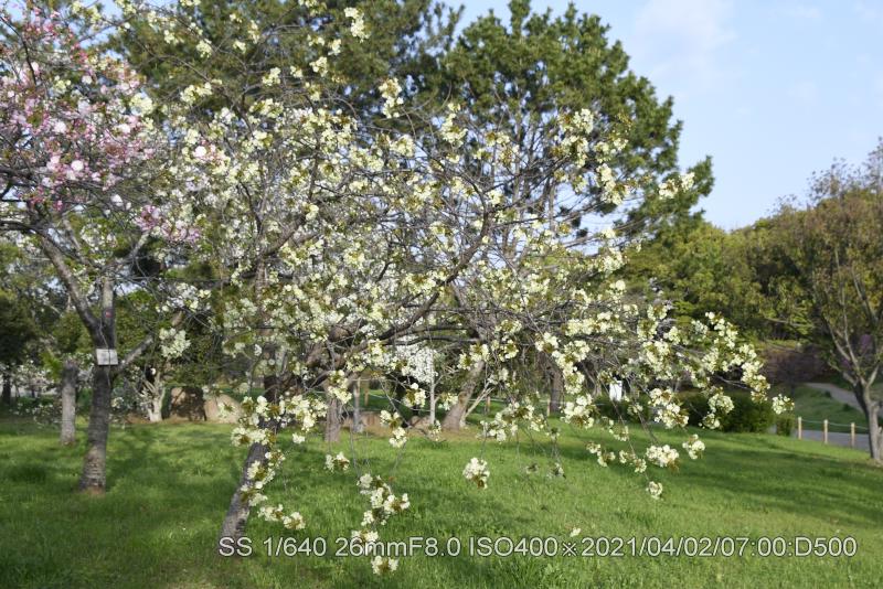 蕾が少ないので満開だろう。開花の早い花は中心部が既に赤くなっている。