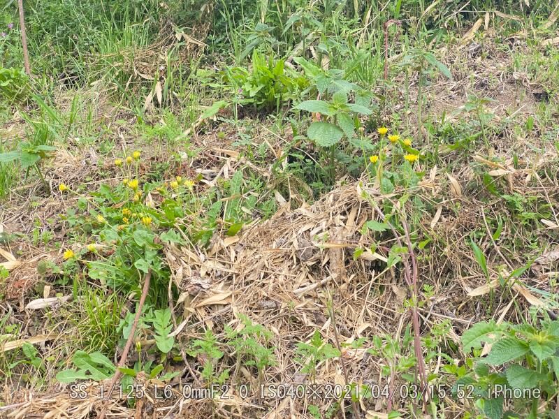 夕方の散歩コースだ。廃屋裏側の小さな公園に八重桜が2本満開だ 竹の秋 山の裾野を離れた位置から見ると竹が黄葉していた。他の植物とは季節が真逆らしい。だから実りの秋(タケノコ)を穫り入れて、やがて落葉する。 日本タンポポ 観音さん下の法面に、ひっそりと遠慮がちに数株が咲いていた。やはり花は小さめで地味だ。
