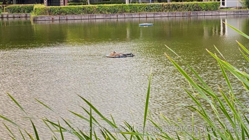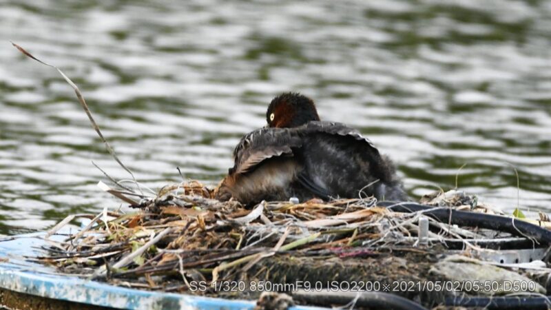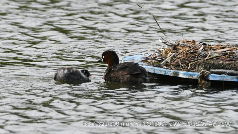 今朝は強風でカメラが揺さぶられた。マイクのウィンドスクリーンもあまり役に立たない。風切り音が大きく入る。雛が水へ入る時間が多くなった。