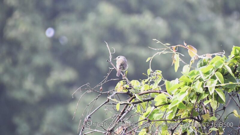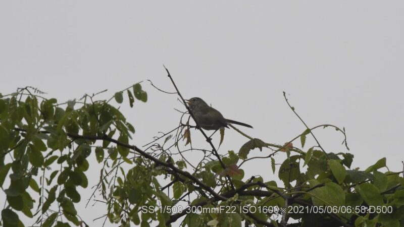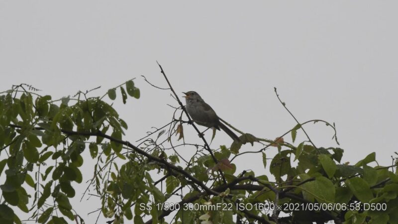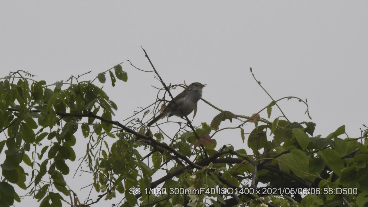 辻の新池堤防のネムノキの天辺で何かに取り付かれたように鳴いていた。生憎の天気で霧が掛かっていた。