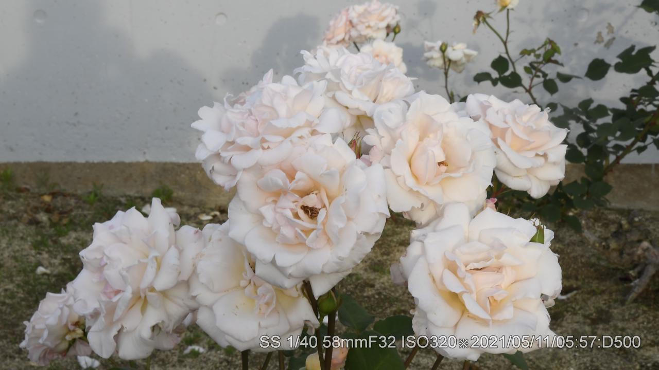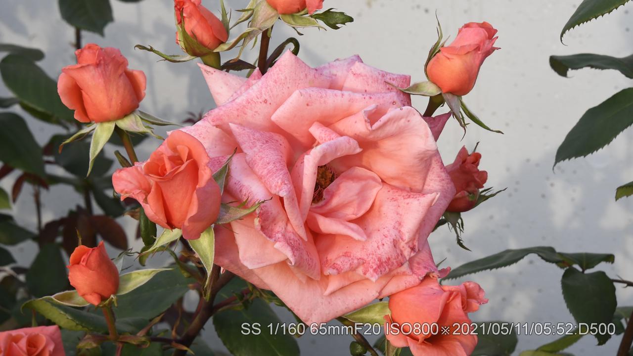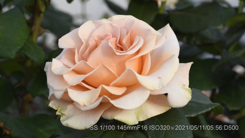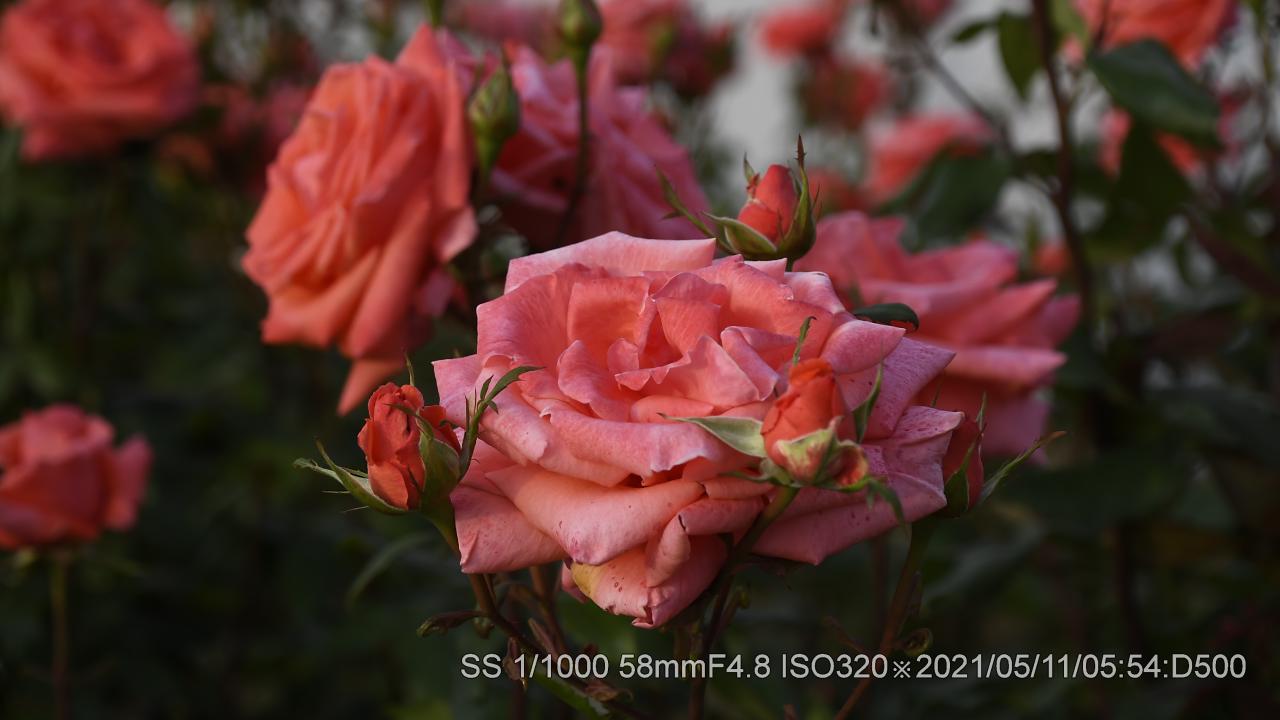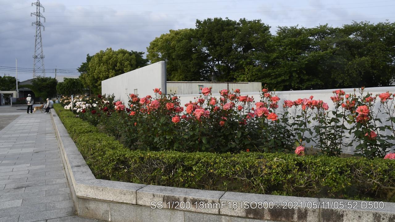池にばかり気が取られてバラ園に気付かなかった。比較的大輪のバラが朝陽で綺麗だった。
