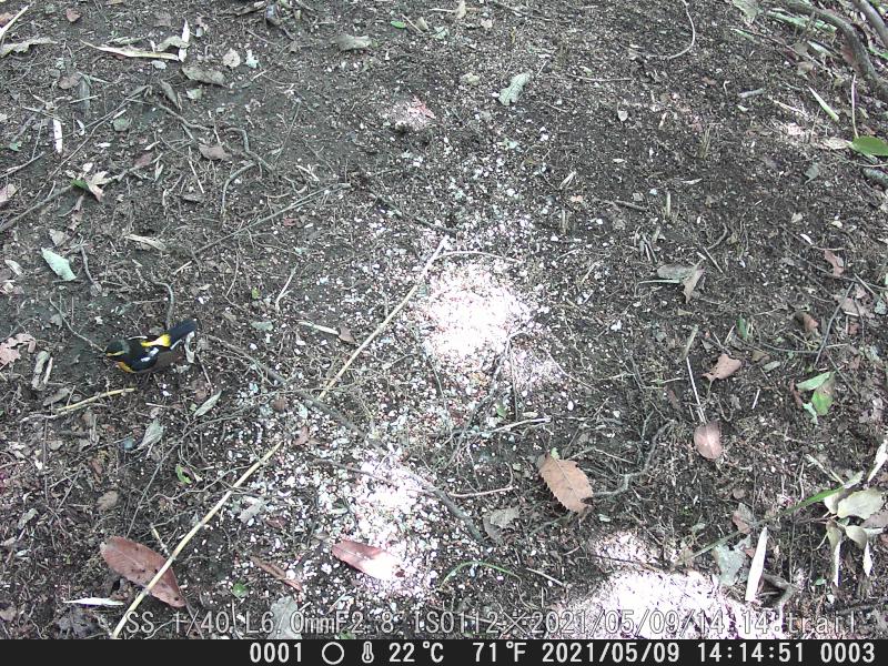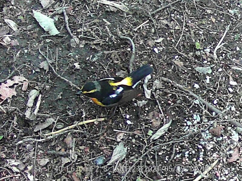 トレイルカメラに珍しくキビタキが写った。楠公寺辺りではよく見かけたが、この辺では初めてだ。鳴き声はネットより。