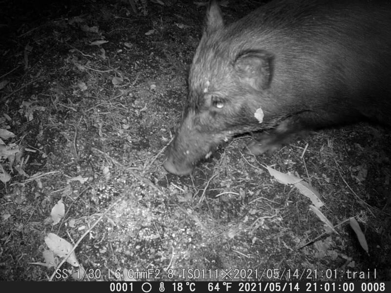餌に米を少し混ぜるようにしたら、イノブタが顔を出した。