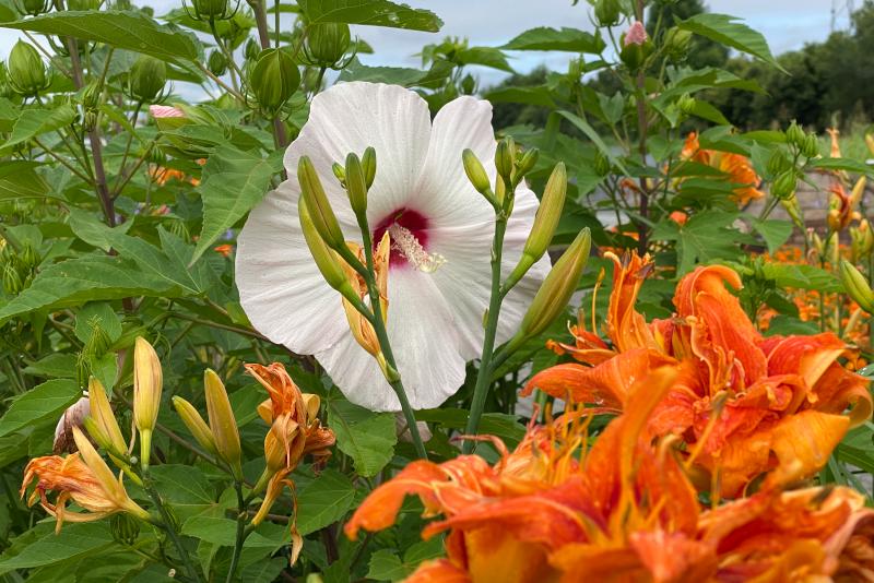 白も有った。雨上がりで鮮やかに咲いていた。未だ蕾が多いので先が楽しみだ。