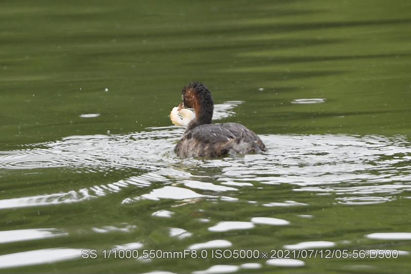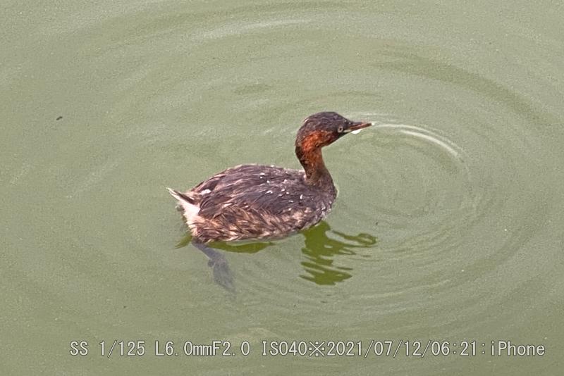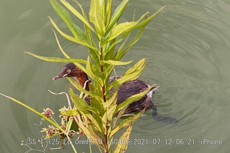 最後になった。足下まで近寄って来た。2021/07/13以降姿を見ない。どこの池へ行ったのだろう。孵化した頃。初めて雛を確認