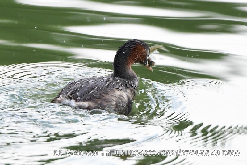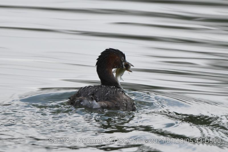 最近は餌を貰いに近づいてこない。口に何か咥えている。画像を拡大して小魚ゲットしたようだ。