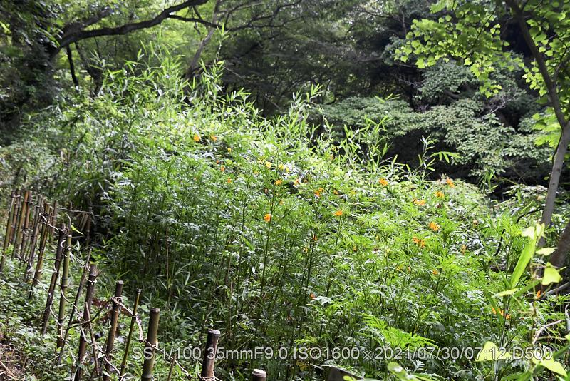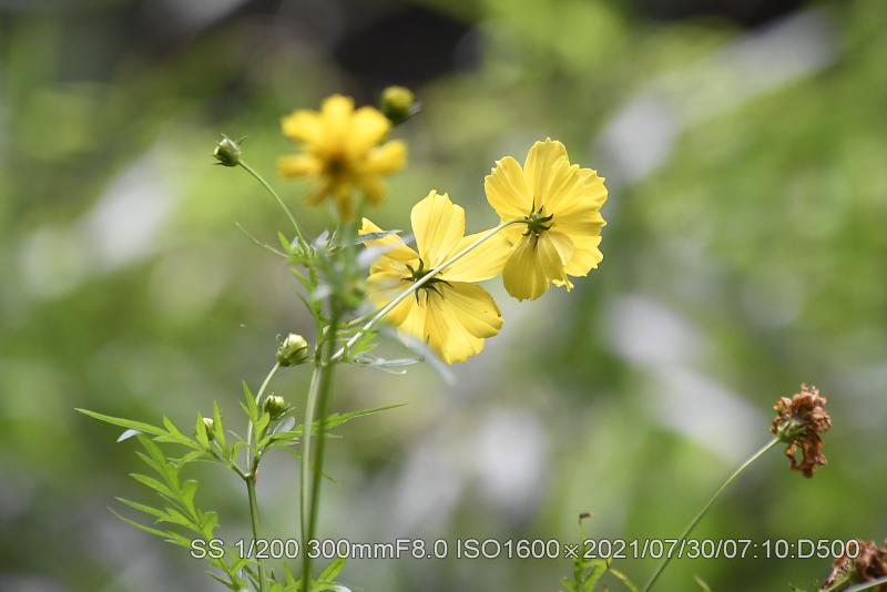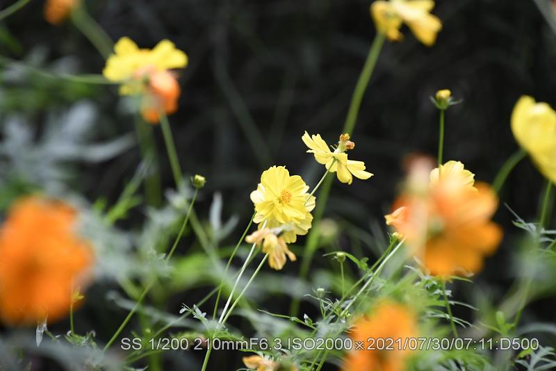 野崎観音さん分岐に槌間さんが植えたようだ。※黄色いコスモスは、玉川大学農学部の育種学研究室が30年以上の歳月をかけて世界で初めて開発したもので、「イエローガーデン」という名称で1987年(昭和62年)に品種登録されている。らしい。