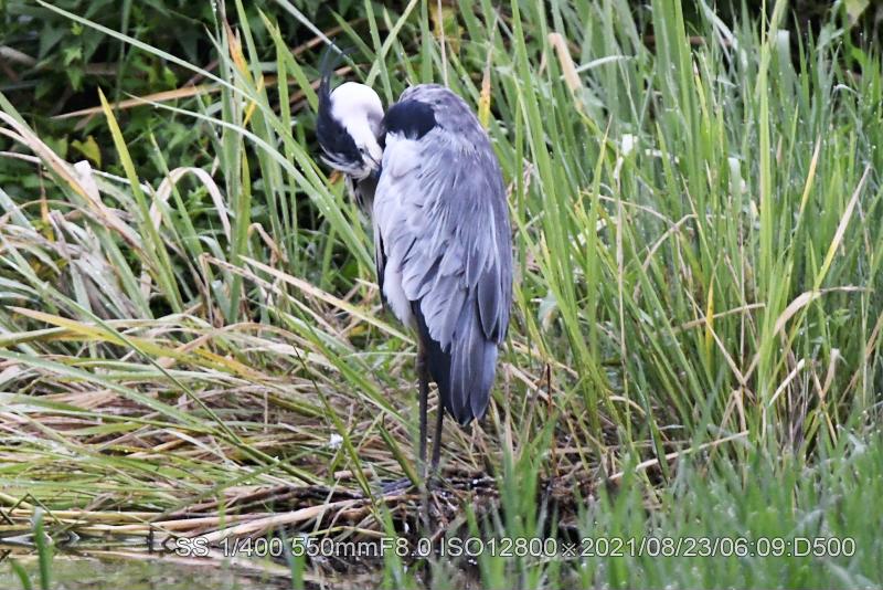 カイツブリを撮っている最中に草むらにいた。朝食は終わったのだろう。くつろいでいた。冠羽もあり色が濃いので成鳥で大きい部類だ。深北緑地はアオサギの生息数は多い。日に数羽は見かける。