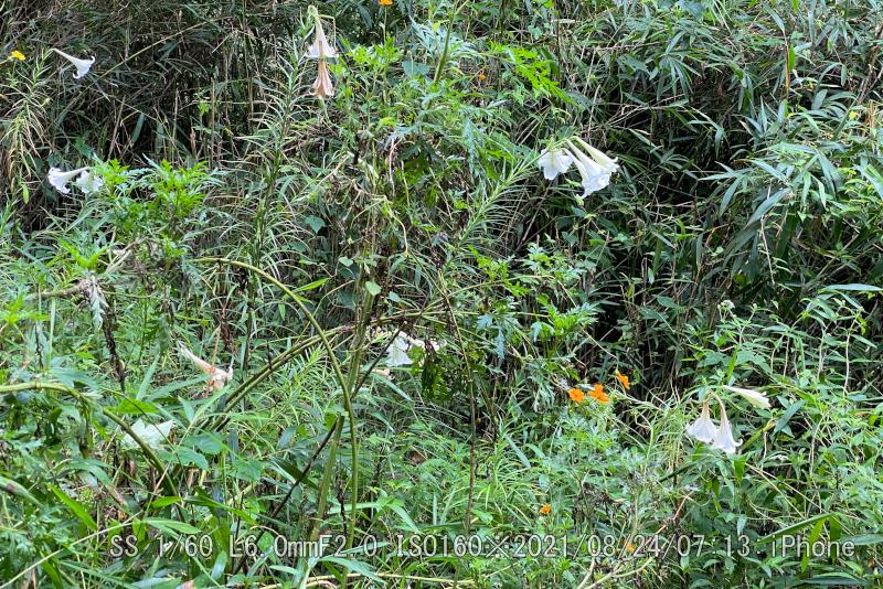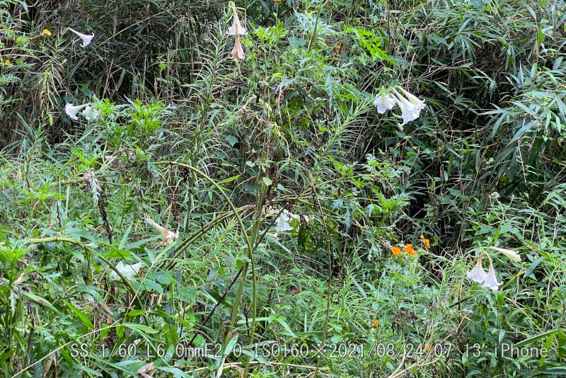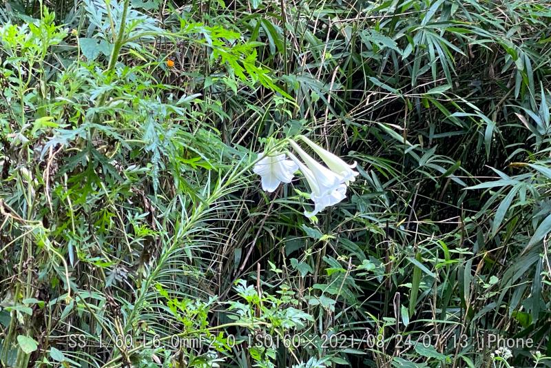 ↑辻の新池堤防のタカサゴユリ ↓野崎観音分岐 槌間さんが植えたタカサゴユリ