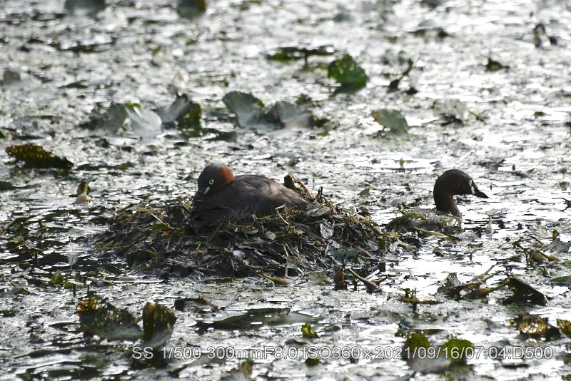 たまたま通勤途中のカメラマン仲間に会った。巣を再度教えてくれた。池の場所を勘違いだった。抱卵中の夫婦がいたが卵は確認できなかった。逆光が残念だった。釣り人の真ん前が気になるが、逆にカラスの被害に合いにくい。