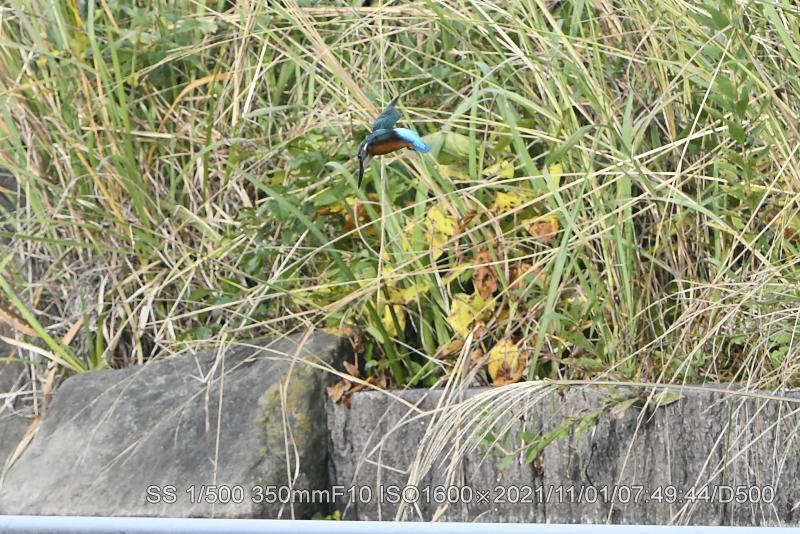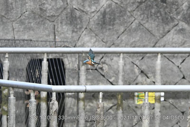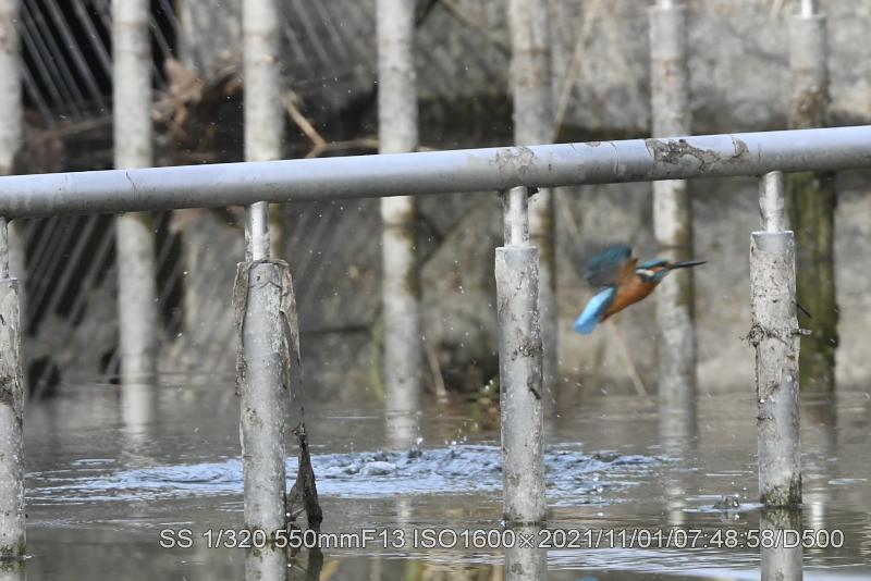 水面に近いパイプに止まっていたので、飛び込みしろを稼ぐのにホバリングで1メータほど上がって飛び込んでいた。