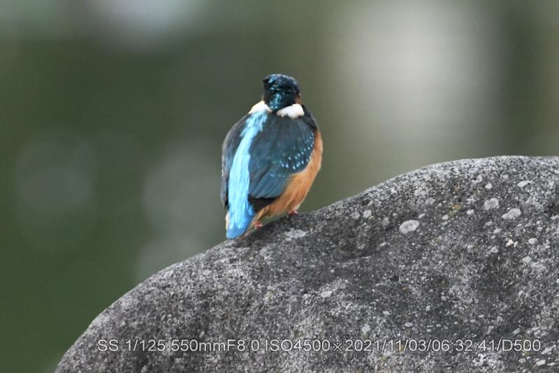 昨日も池に着いた時は居なかった。一周してラジオ体操の時刻に東屋の岩にいた。
