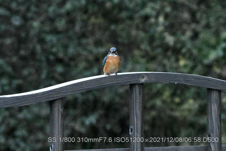 弁天池東屋前。5分ぐらいの間に止まり木を6箇所も変えた。その割りには飛び込む気配も無い。