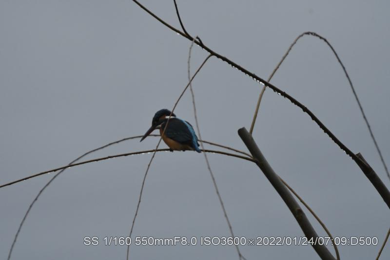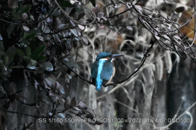 目が早く覚めたので弁天池まで早く出かけた。池は暗くてとても撮れる状態では無かった。ホシハジロに餌を撒いて時間を潰した。池を一周している間にカワセミが顕れた。暗い時は背中のブルーが浮かび上がる。背へ廻ろうとしても、すぐに向きを変えたが何とか撮れた。場所は頻繁に変えた。最後は柳の高い枝に停まった。ダイビングできる高さでは無いが気に入ったみたいで、長い間停まっていた。