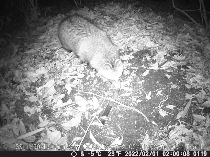 カメラの正面からタヌキさんが入って来た。センサー感知=カメラ起動が同じだ。