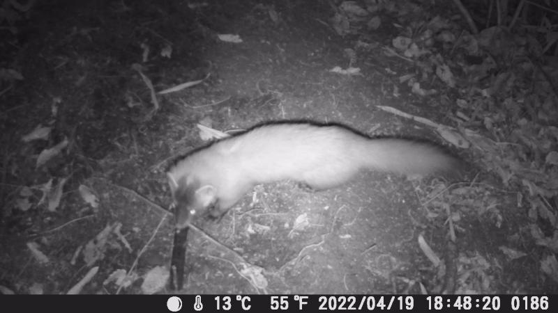 顔に黒がある。テンかイタチか迷ったが尻尾がフサフサしている。