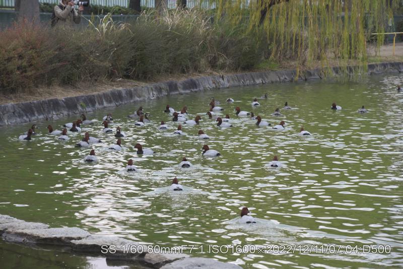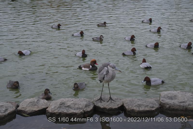 どこからともなくアオサギ・幼鳥が飛んできます。人(カメラマン)に懐いている。餌を投げると芋の子を洗うような騒ぎです。