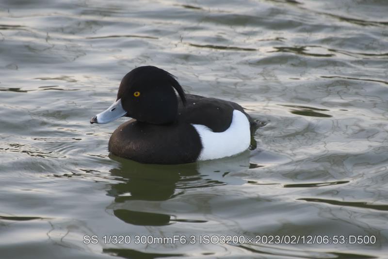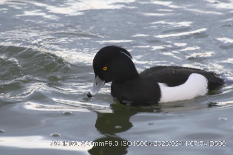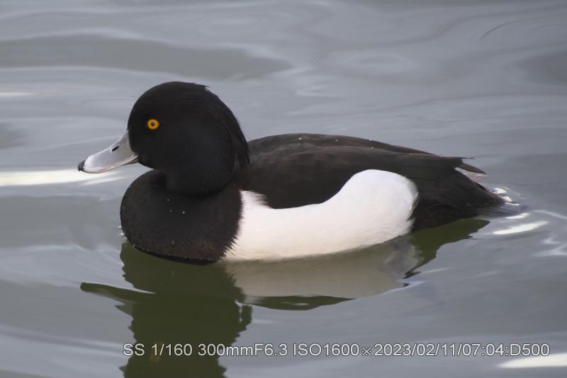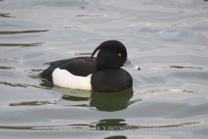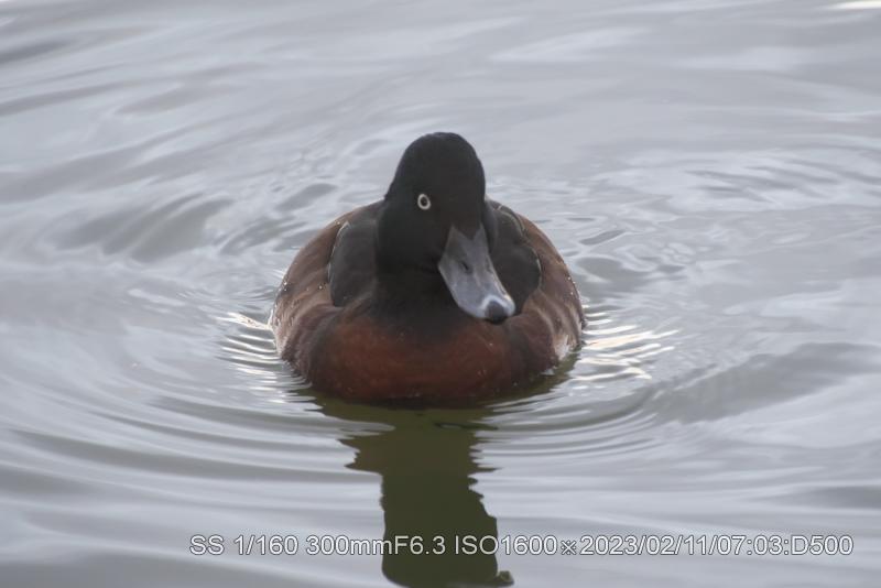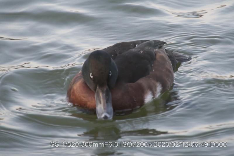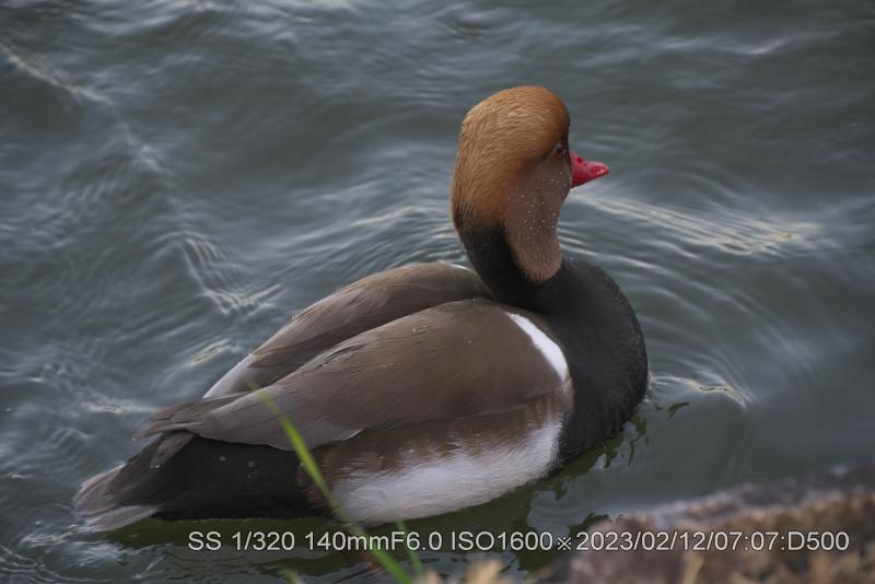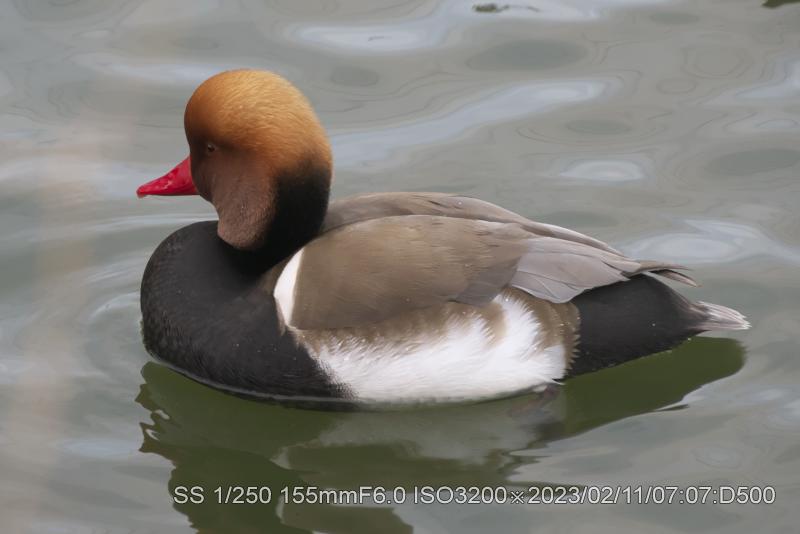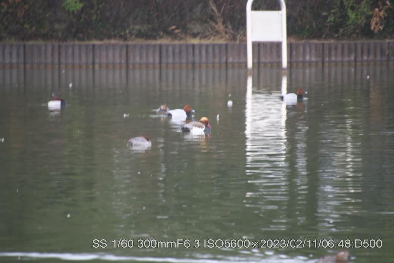 2/11・2/12 3羽とも居た。明るい状態で撮ると本来の羽根の輝きがでている。アカハジロは赤の根拠となる赤色だ。