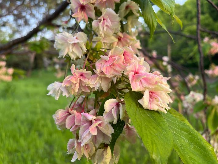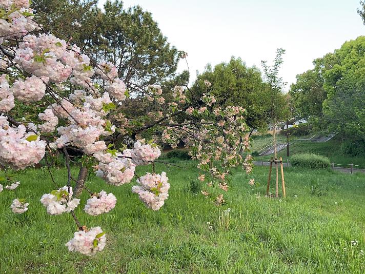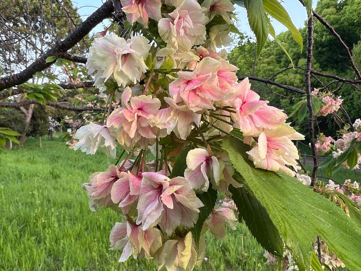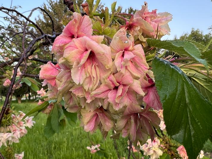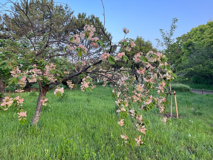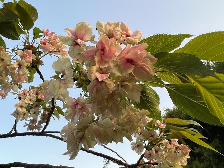ショウゲツがキザクラの隣りに咲いていた。キザクラはすっかり色が変わった。