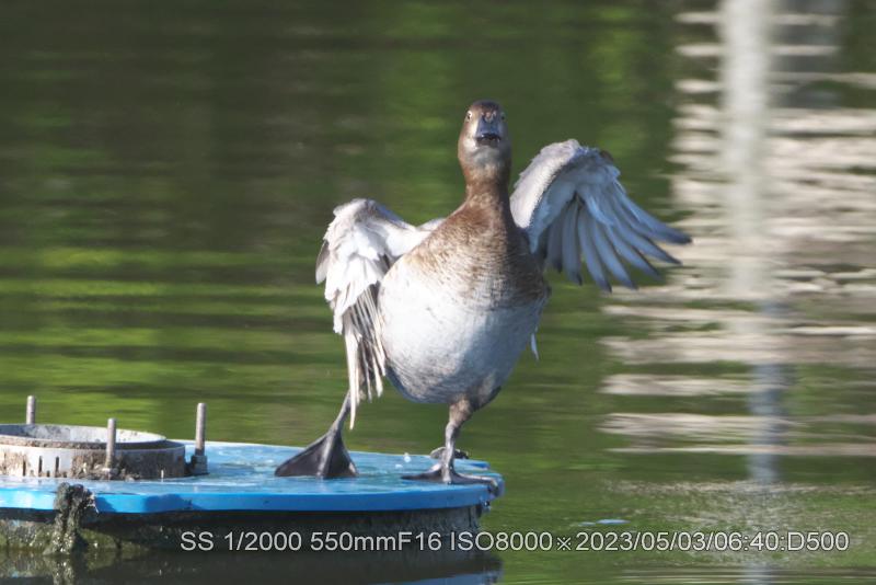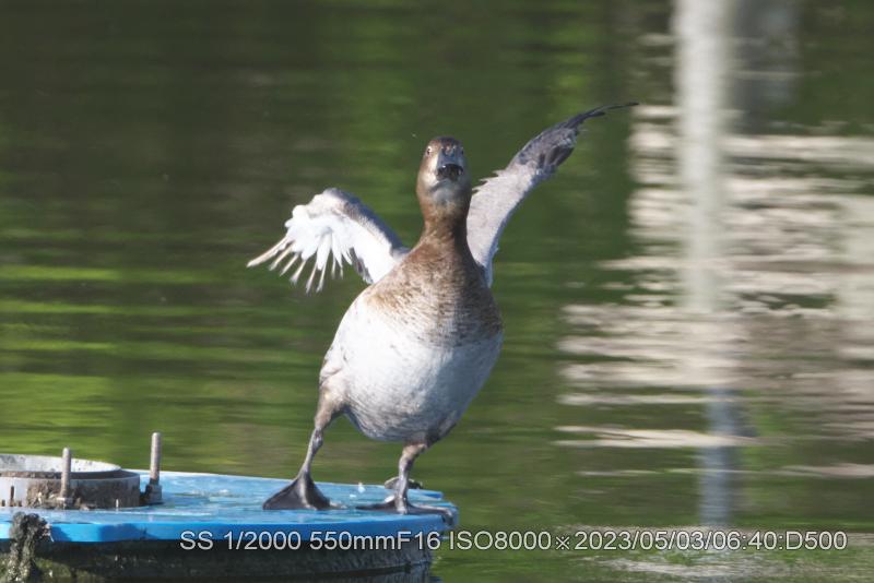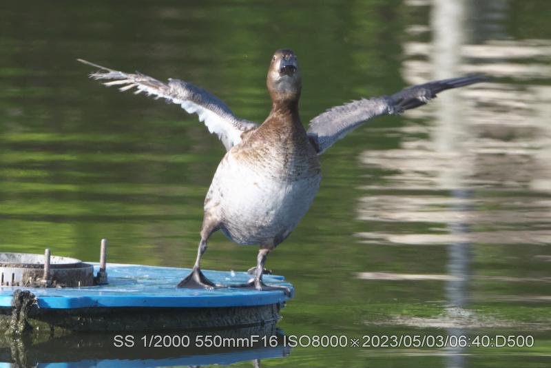 やはり片側の羽根が痛めていたようだ。傷は完治しても遠距離は飛べそうに無い。ホシハジロメス。