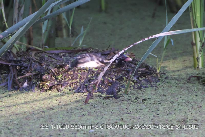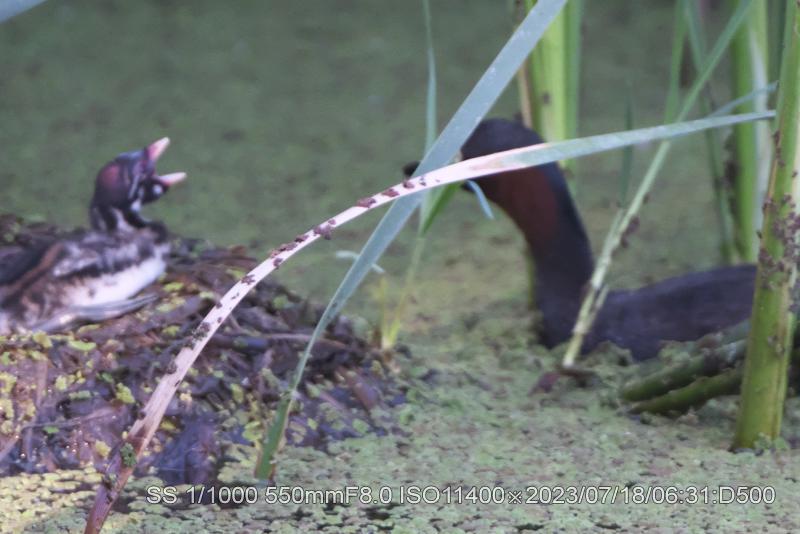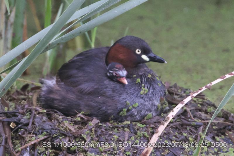 羽根の中に隠れているように見えない。