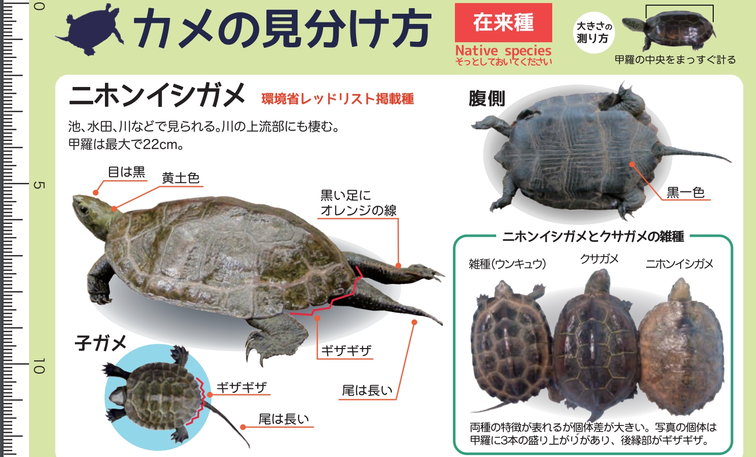 日本固有種は2種のみ ニホンイシガメと日本の淡水ガメたち。弁天池にはホントに数匹だけになった。