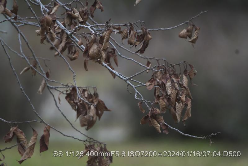 やっぱり枯れたかな。枯れ葉が木に纏わり付いて落ちない。