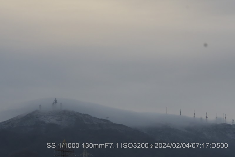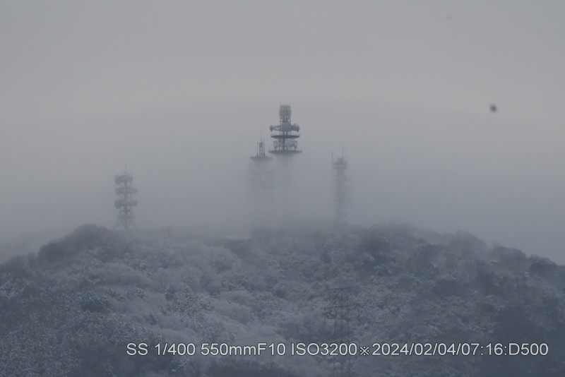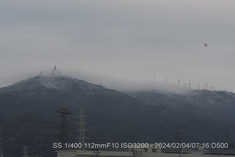 生駒山頂に冠雪。散歩から帰る頃に気が付いた。