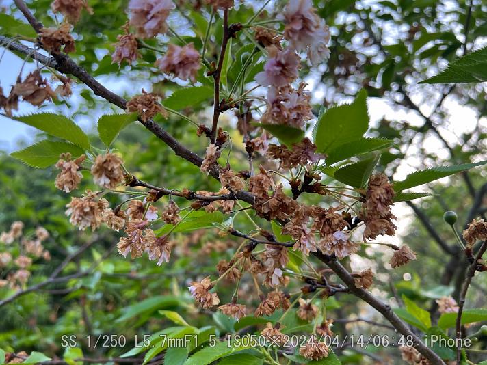 葉桜になって終わりだ。花はドライフラワーになって残っている。