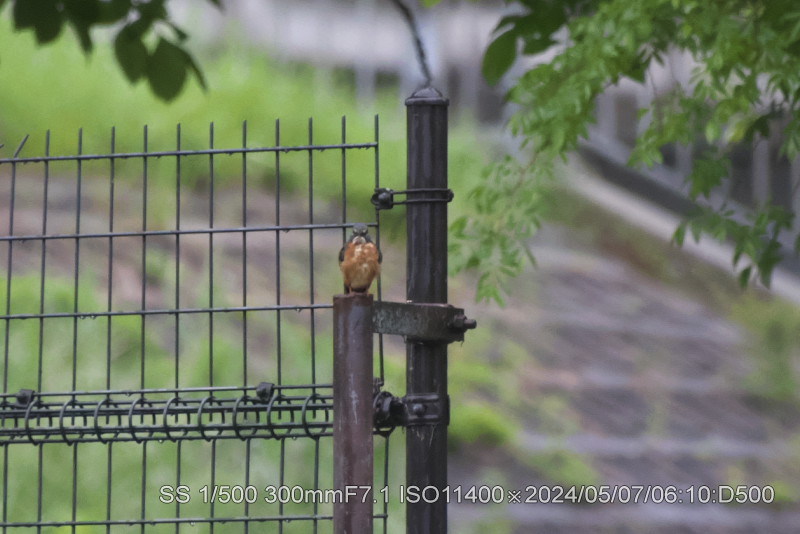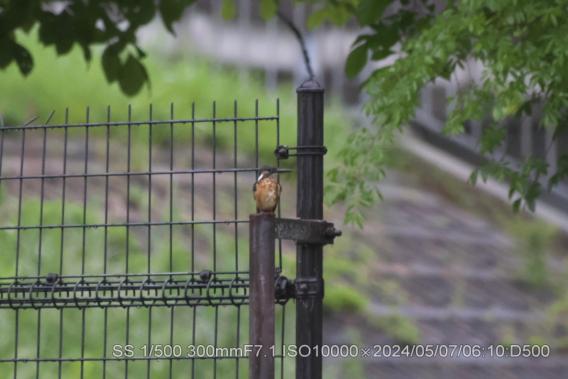 止まっていた。飛びこむ気は無さそうだ。水面が藻で覆われている。今朝は雨で湿っていてカワセミが好きな状況にあったのに。