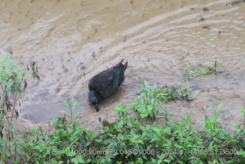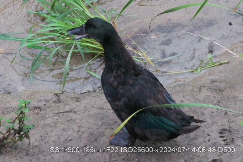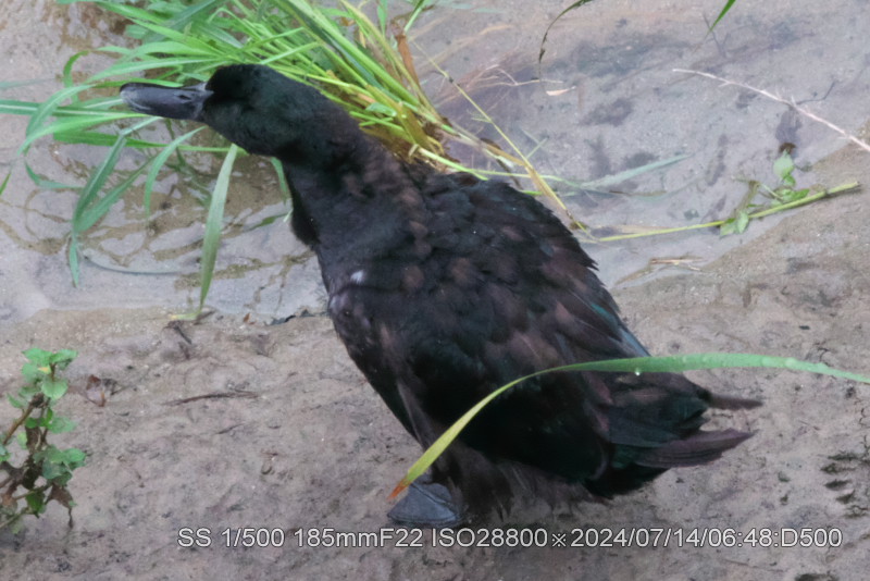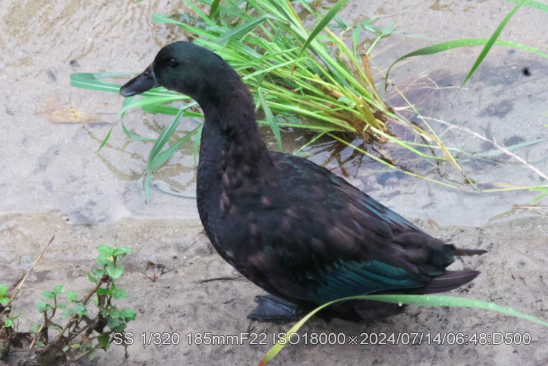 色々調べたが未だ不明のままだ。嘴、足ひれも真っ黒だ。追加8/5ネット検索カユーガダックニューヨーク、カユーガ湖で発見された黒化個体を改良