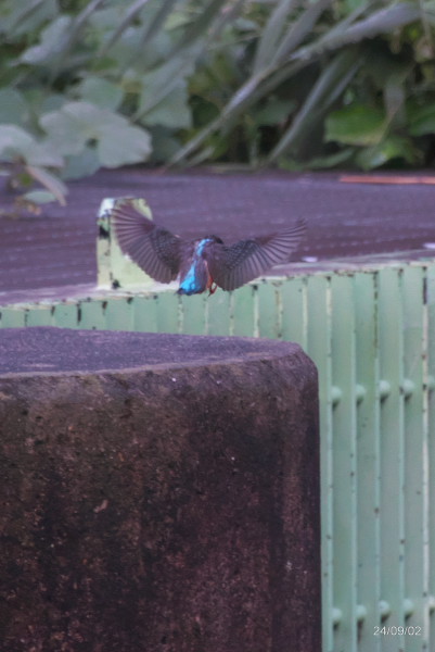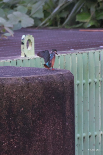 今朝は昨夜の雨で湿っぽい。カワセミの活動に最適だ。やはり居ました。