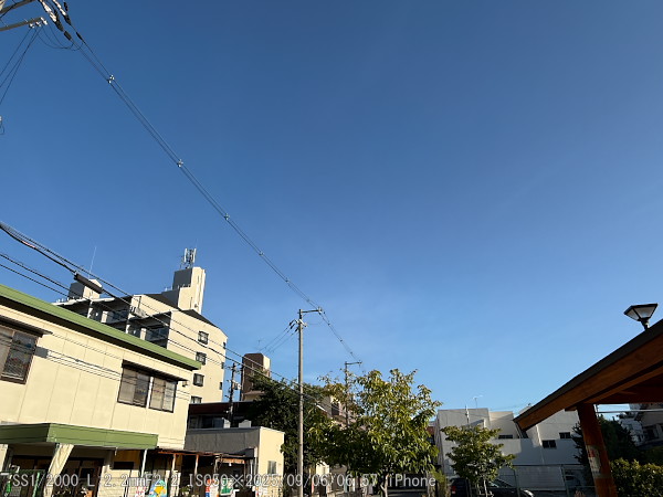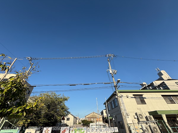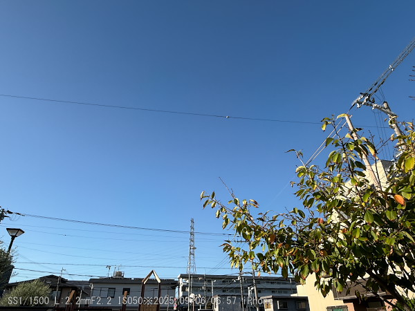 今朝の天気。日本晴れ。雲一つ無い。野崎中公園から。