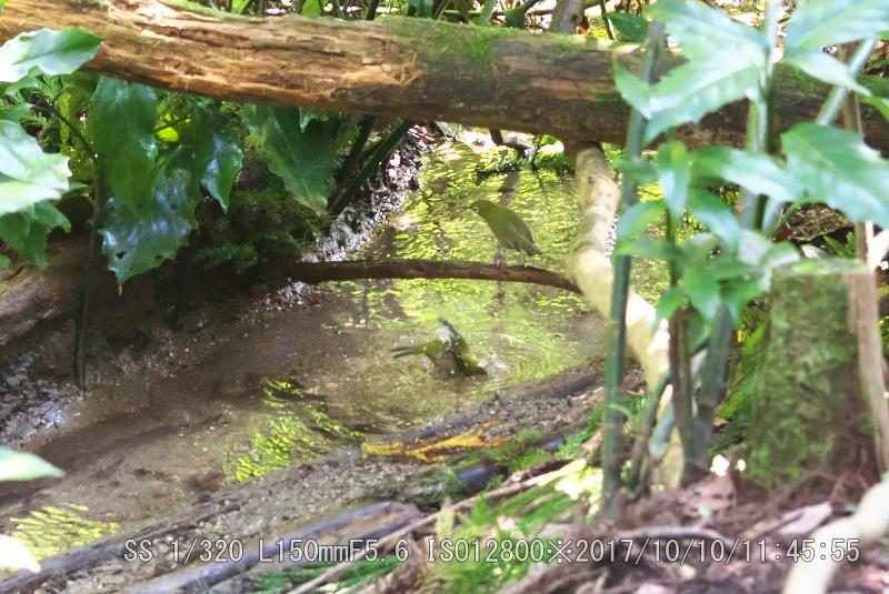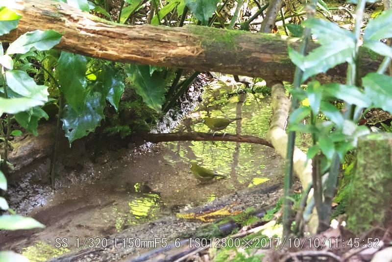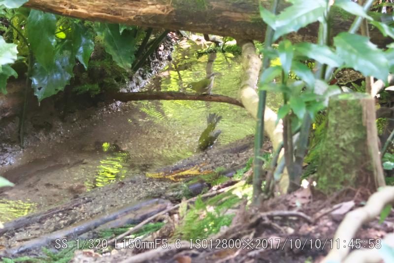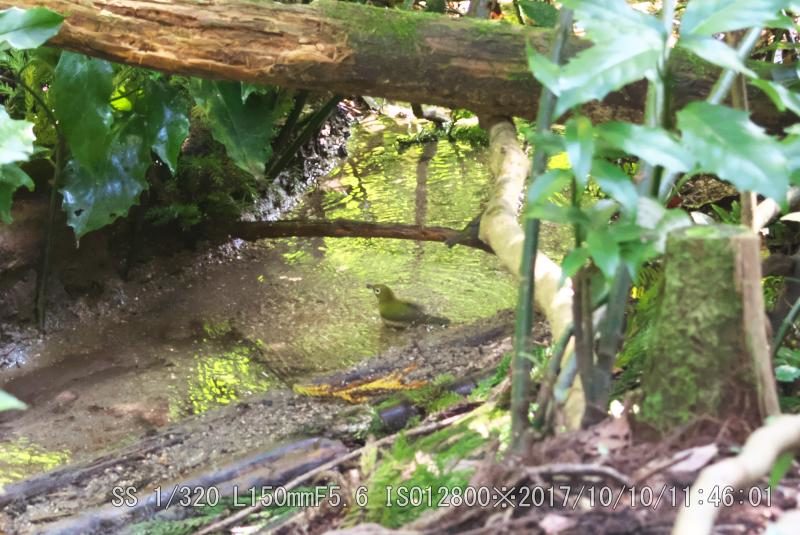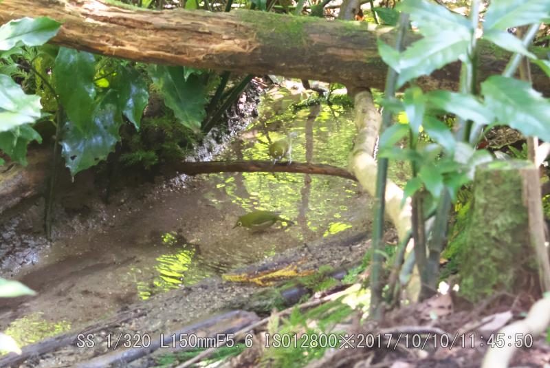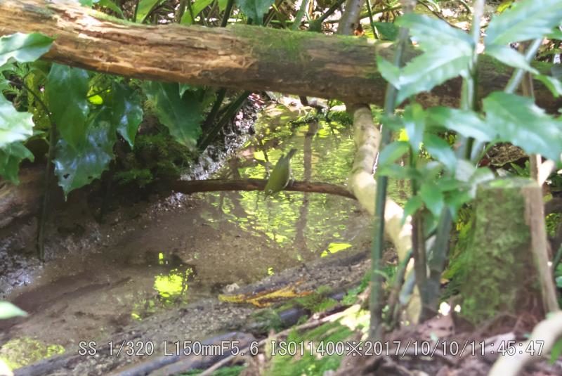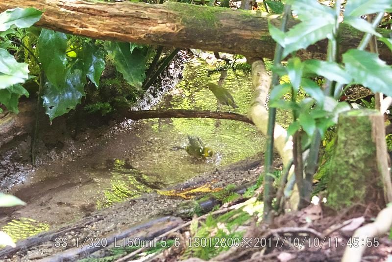 むろいけ園地・湿生花園入口付近で時々叔父さんが三脚、椅子をセットで待ち構えていた。きょうは居なかったので、たまたま気兼ねなく撮れた。メジロが2羽で水浴びしてた。最初の一羽が水浴びに現れてから、水浴びが始まるまで約1分ほどで飛び立って去るまでの50分間ほど水と戯れていた。横棒(止まり木)は撮影者が、わざわざ取りらしい。通りすがりで良い写真が撮れて申し訳無い気持ち。