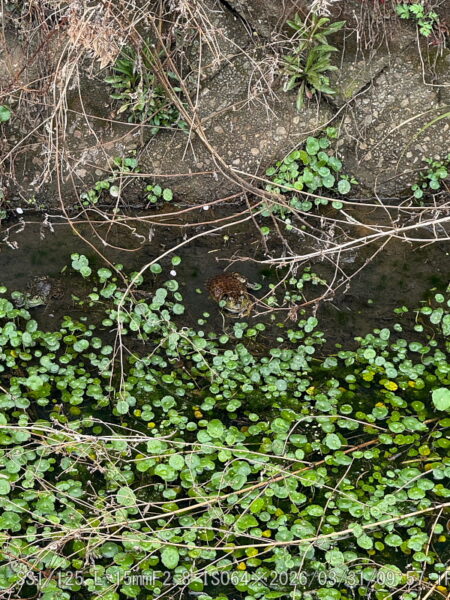 鳴いてはいない。一匹だけ冬眠から覚めたようだ。 About The Authornagata大東の自然Recent PostedApril 14, 2026昆虫ウシガエルApril 13, 2026植物イロハモミジApril 5, 2026動物ヌートリアMarch 31, 2026動物冬眠から覚めたMarch 24, 2026花3月八重ツバキMarch 20, 2026風景・景色春分の日nagataの記事一覧